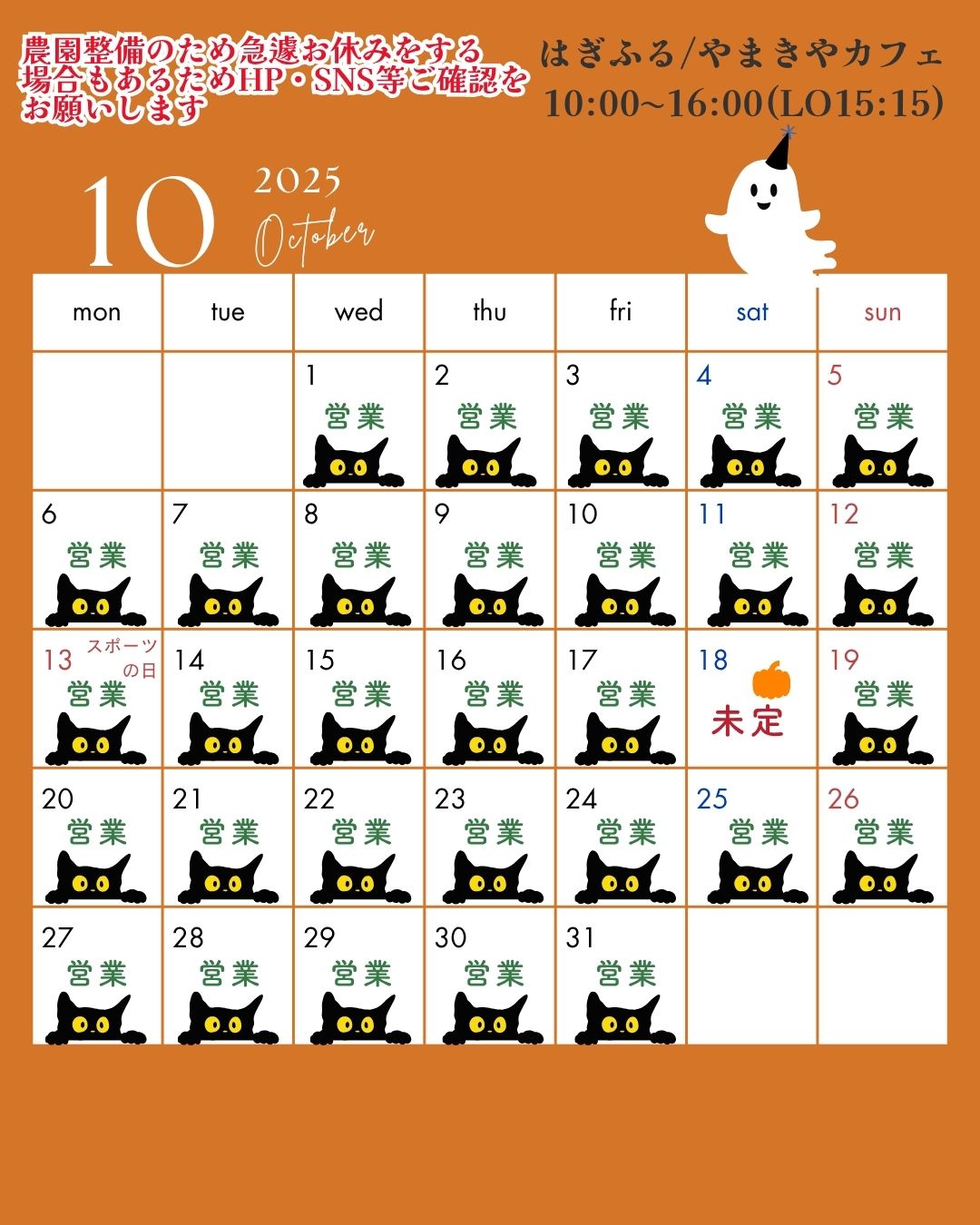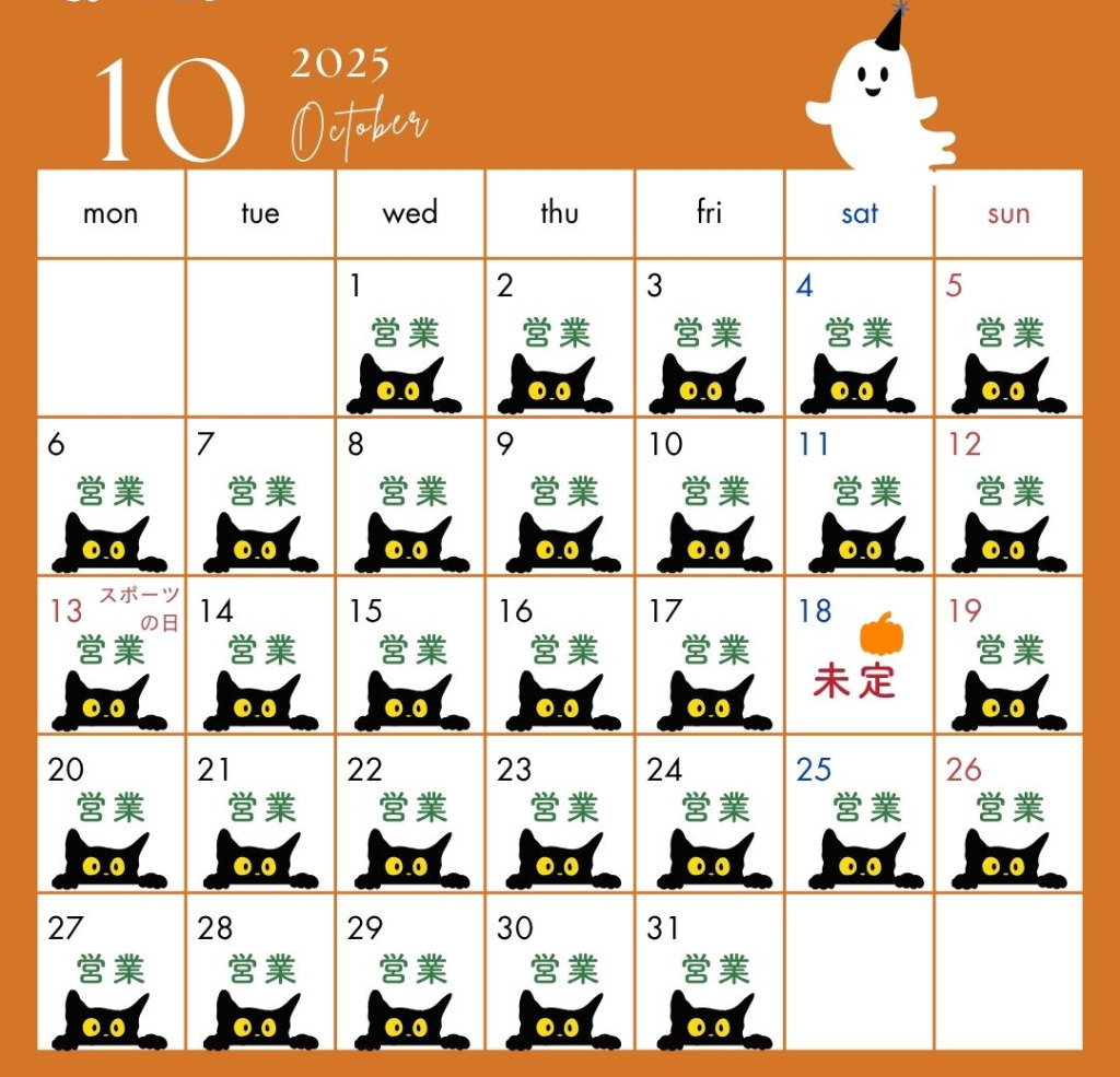 10月の営業日程カレンダーは9月末日までにお知らせします。