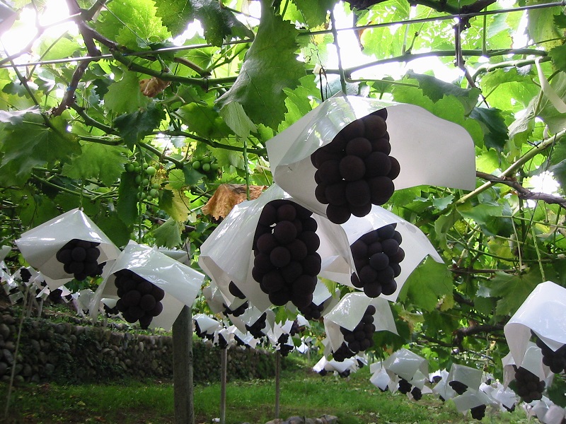 ピオーネ、シャインマスカット、ハートの形のマイハート!も収穫可能。畑でもぎとり、ご精算の後はカフェでゆっくりお召し上がり。お持ち帰りの際は、箱にお入れします。1房の量り売りの目安は、1000円~150…